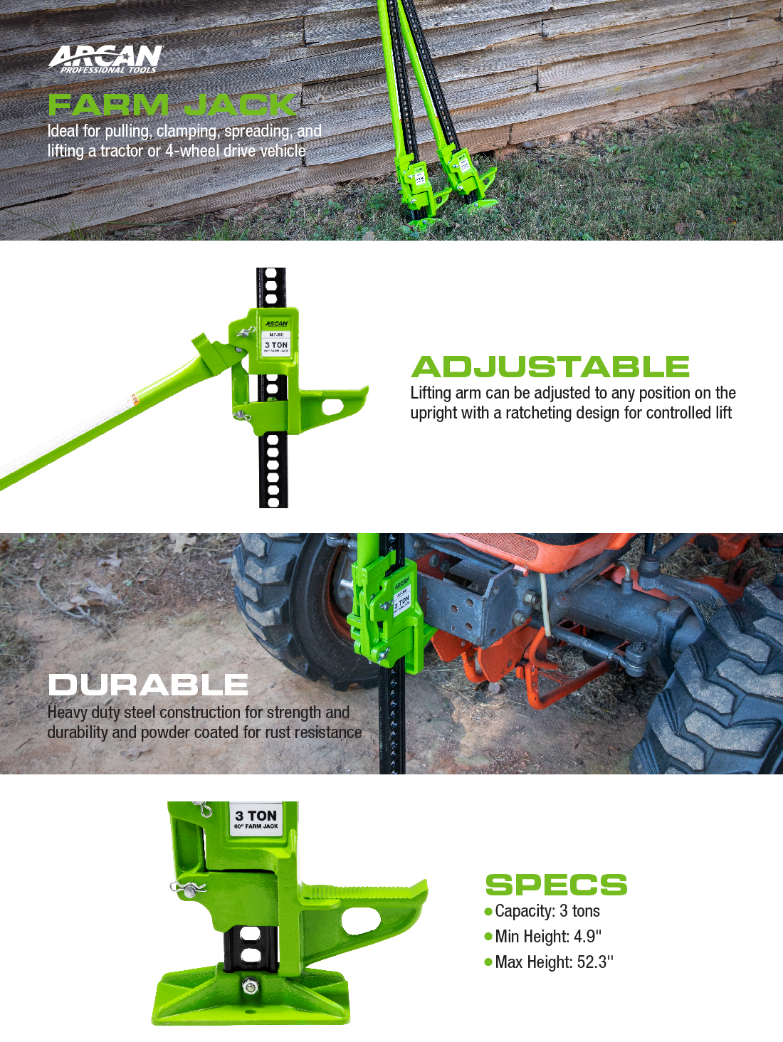 3 ton load capacity with a lifting range of 4.9" to 52.3".